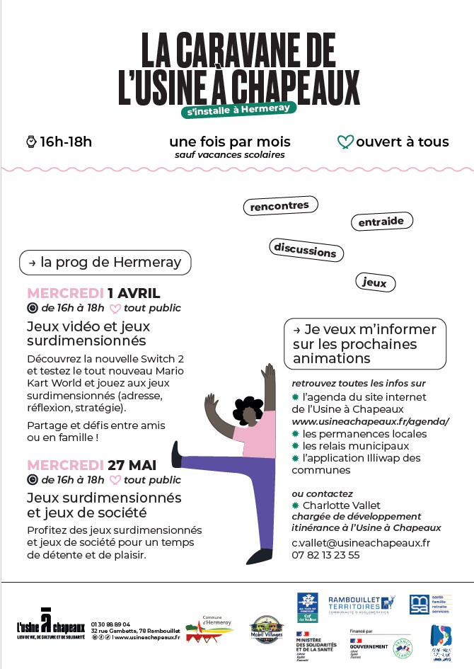 La Caravane de l’Usine à Chapeaux sera présente sur le parking de l’Ecole, les mercredi 1 Avril et 27 Mai, de 16h à 18h.